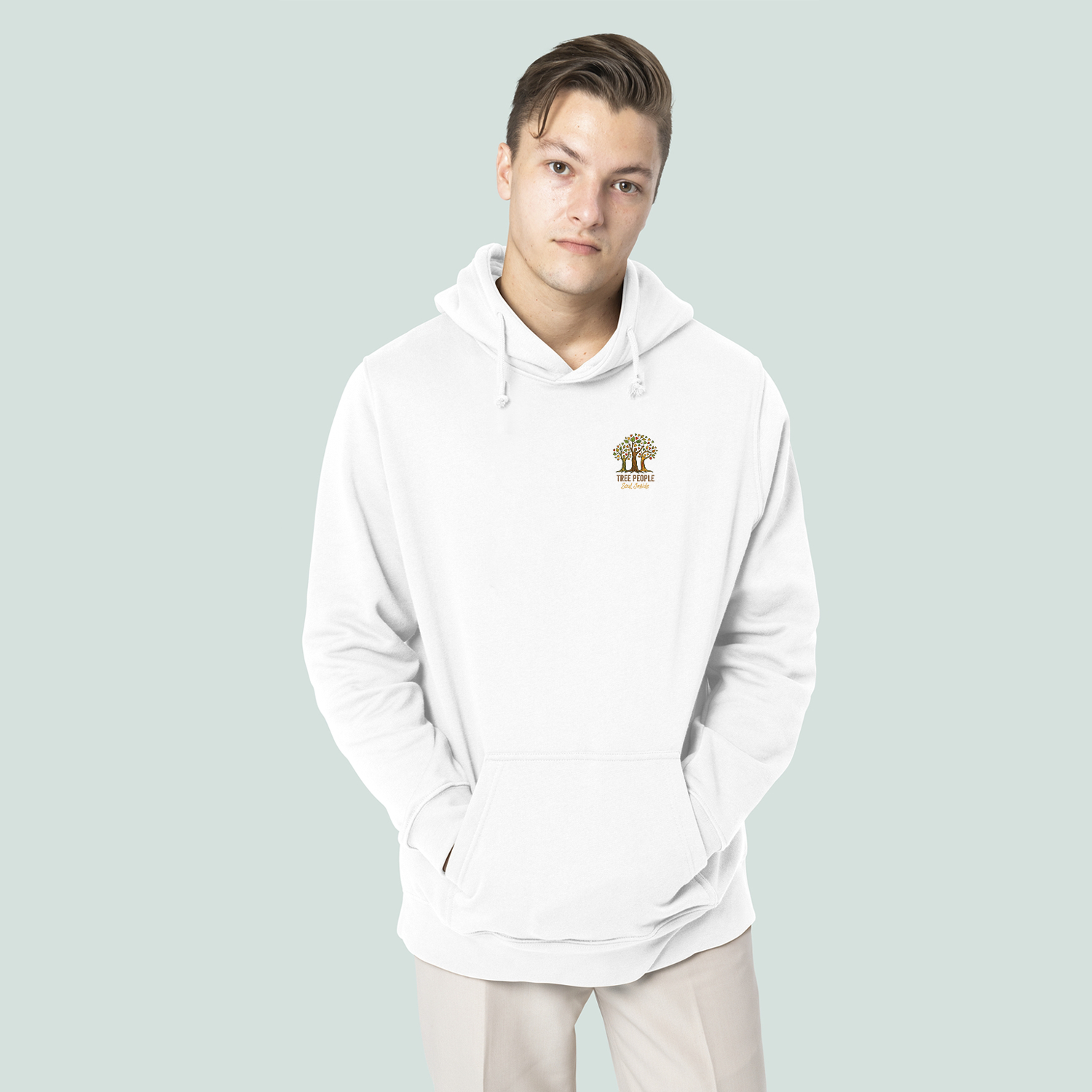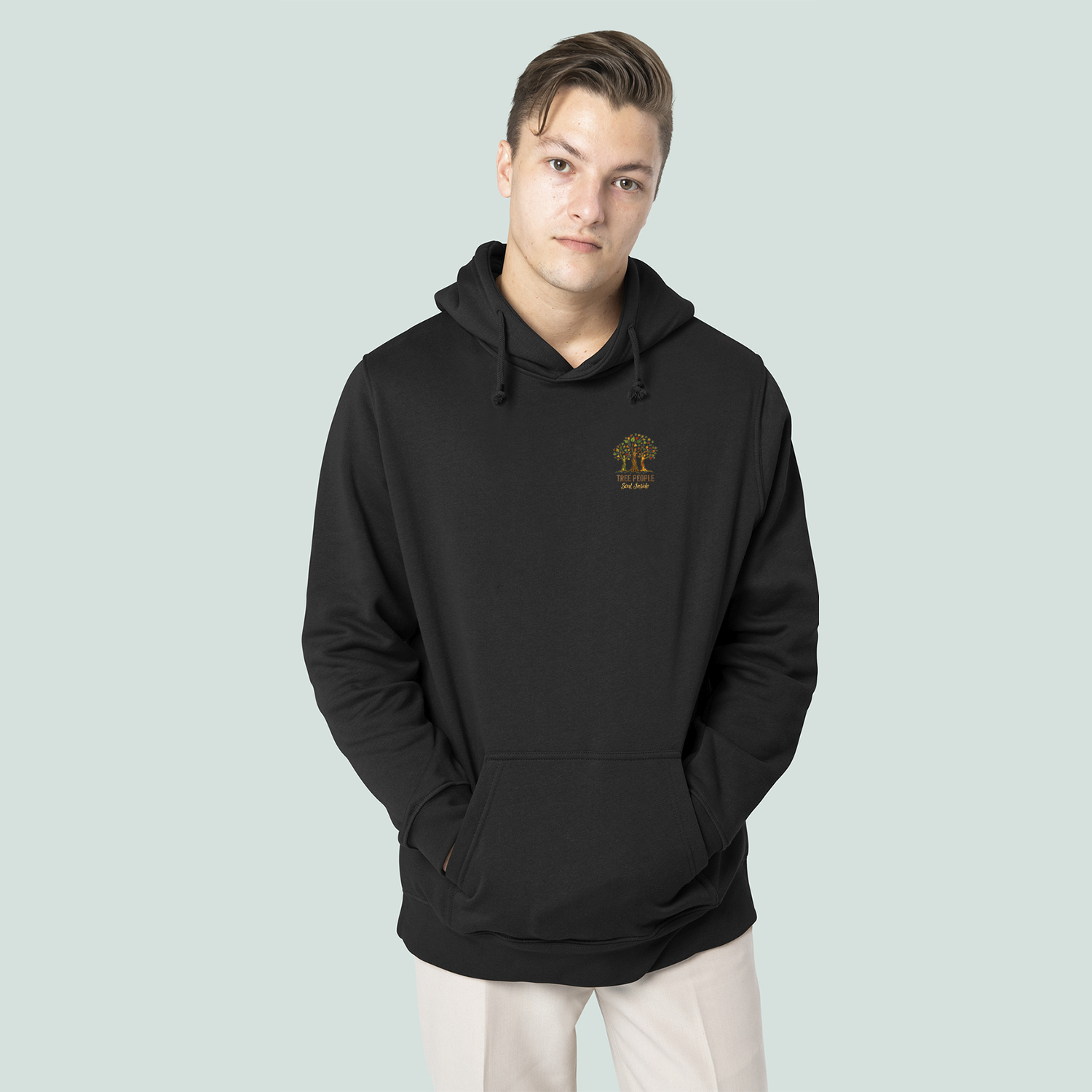 Durable combination of ring-spun cotton and polyester. Medium-weight unisex hoodie with Brushed interior. Elasticated ribbed hem at the waist and at the end of the sleeves. 50% Ringspun Cotton and 50% Polyester fabric. Washable at 30 degrees. PETA Vegan Approved Certified Product - Oeko Standard 100