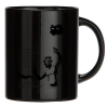 Microwavable and certified food-grade black ceramic mug packed in a box with a side window.